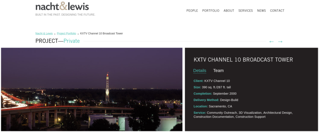 “KXTV Channel 10 Broadcast Tower.” Nacht & Lewis Architects. https://nachtlewis.com/project/kxtv-channel-10-broadcast-tower/